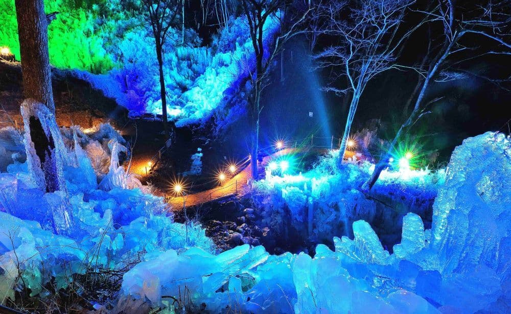 決して巨大な氷柱ではありませんが氷の華が咲き乱れてとても幻想的です。
