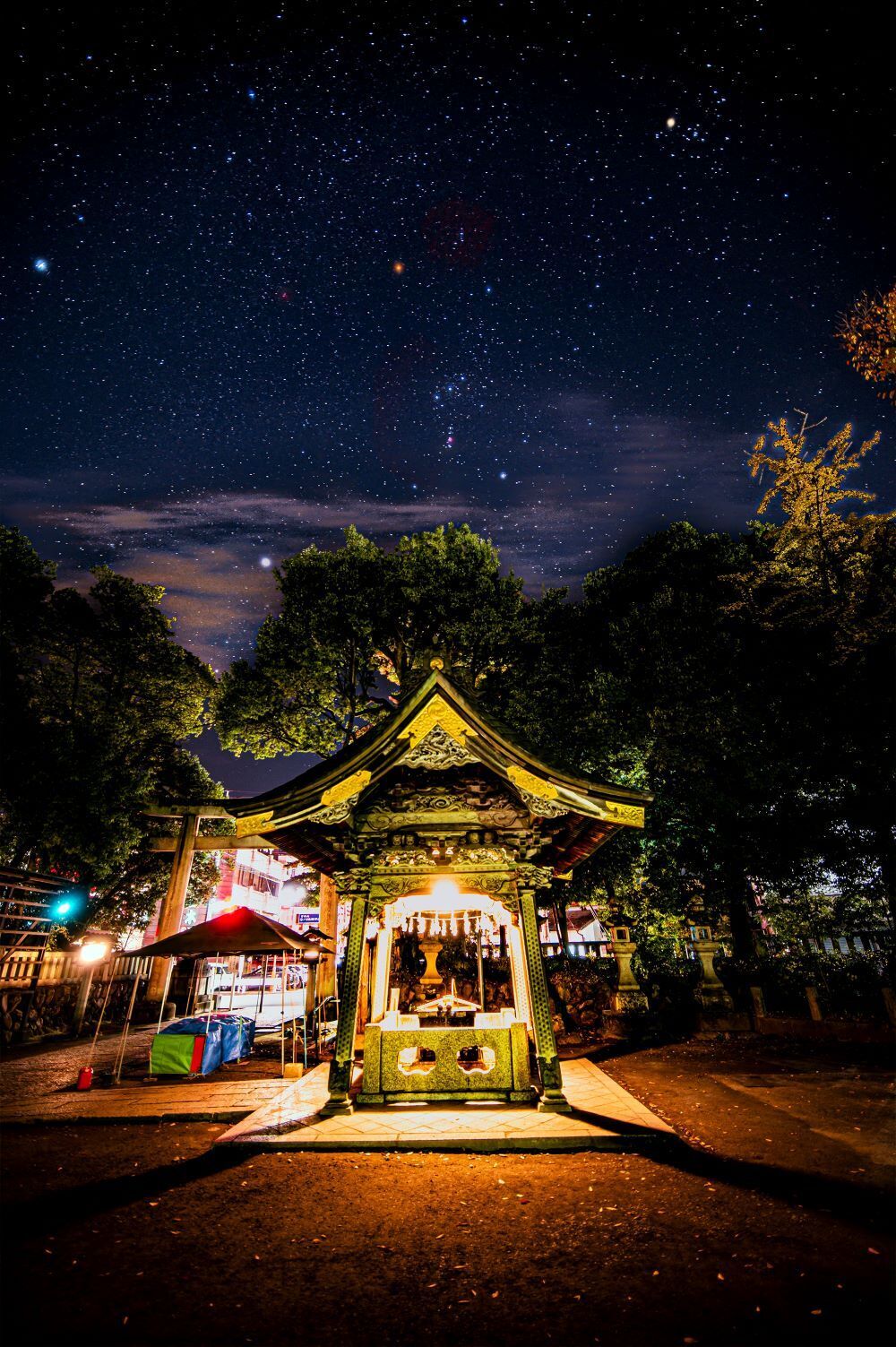 秩父神社の趣のある手水舎とオリオン座のコラボです。周囲が明るく、星を写すのに苦労しました。